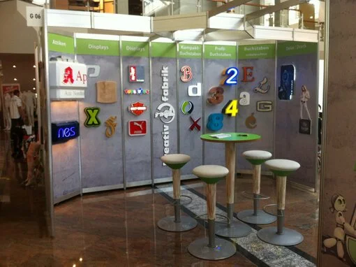 Selbstverständlich ist es mit unserem System auch möglich kleine  Präsentationsstände zu erstellen, welche auch kurzfristig eingesetzt werden können.